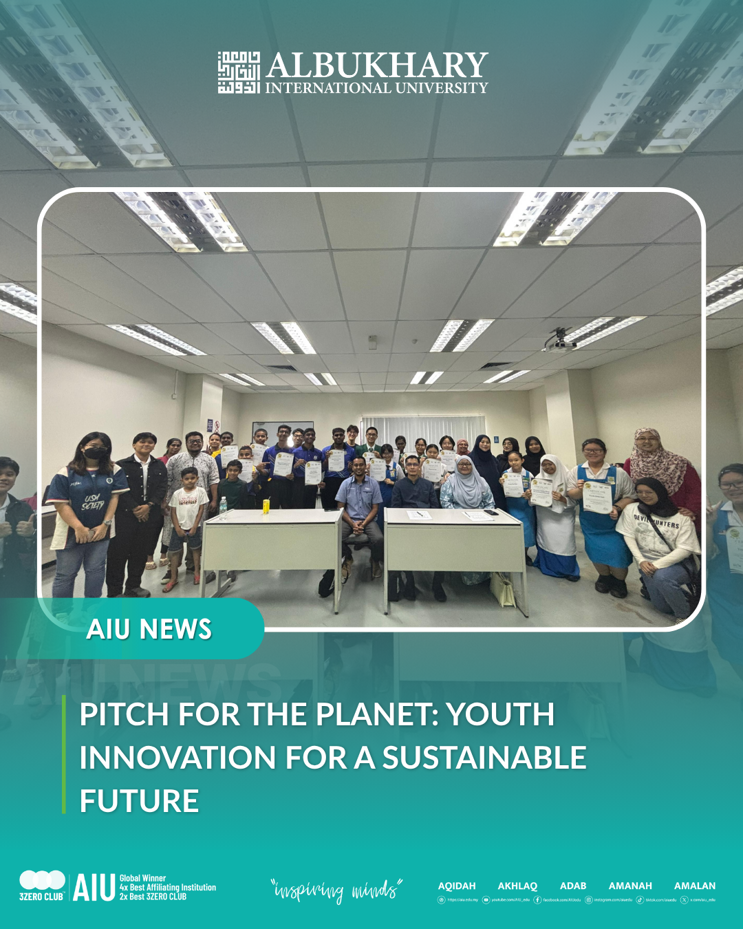 ALOR SETAR, 15 October 2025 – The Pitch for the Planet competition, held at the Penang Skills Development Centre and organised by the Penang Math Platform on October 11, 2025, brought together young changemakers with bold ideas for a greener future. The event was supervised by consultants from Albukhary International University (AIU), Mdm Alia Hanim Zainal Abidin and Mr Mohd Fadli, alongside Dr Amrah Abdul Majid from Universiti Sains Malaysia, who guided and supported the participants throughout the project.