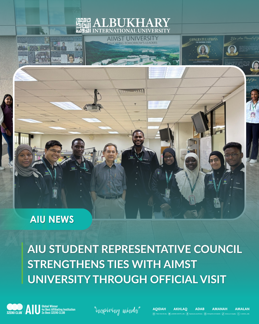 ALOR SETAR, 16 October 2025 – With the kind invitation from AIMST University, the Student Representative Council (SRC) of Albukhary International University (AIU) paid an official visit to AIMST University on 10 October 2025.