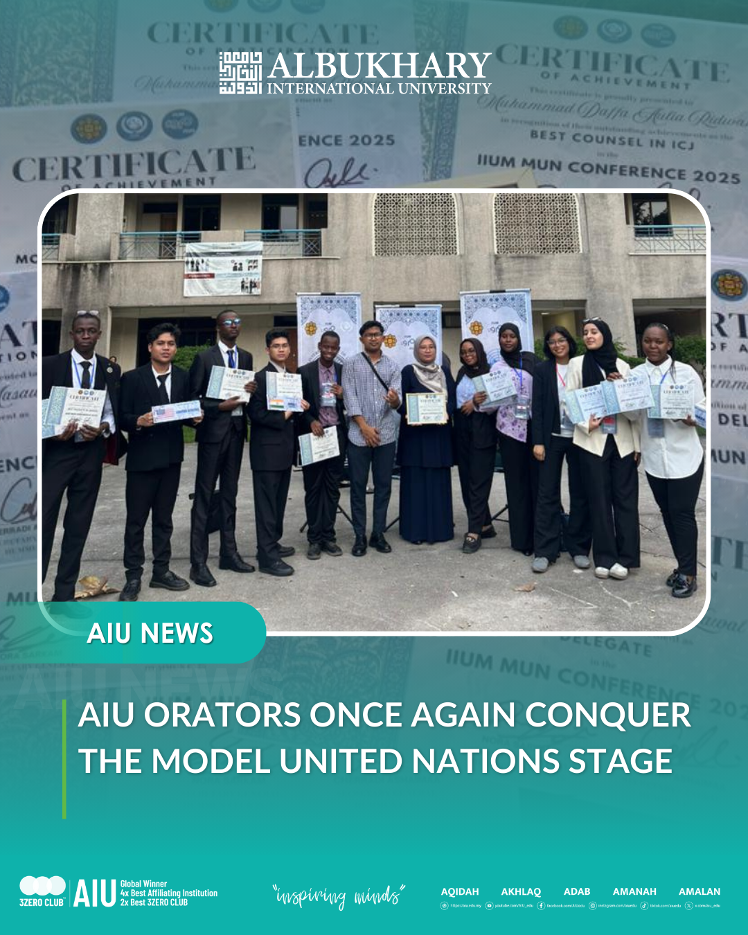 ALOR SETAR, 24 December 2025 — Albukhary International University (AIU) proudly celebrates the outstanding achievement of its students at the IIUM Model United Nations Debate Competition 2025, organised by IIUM MUN from 5 to 7 December 2025 at the International …