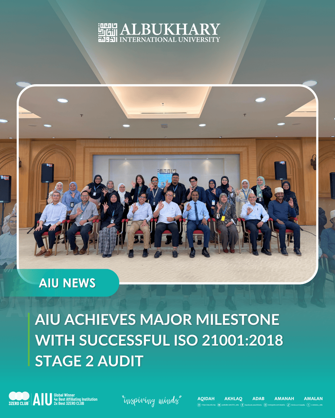 ALOR SETAR, 15 December 2025 – Albukhary International University (AIU) has successfully completed the Stage 2 audit for ISO 21001:2018 Educational Organizations Management System (EOMS), marking a significant milestone in strengthening its quality assurance framework. The audit was conducted by …