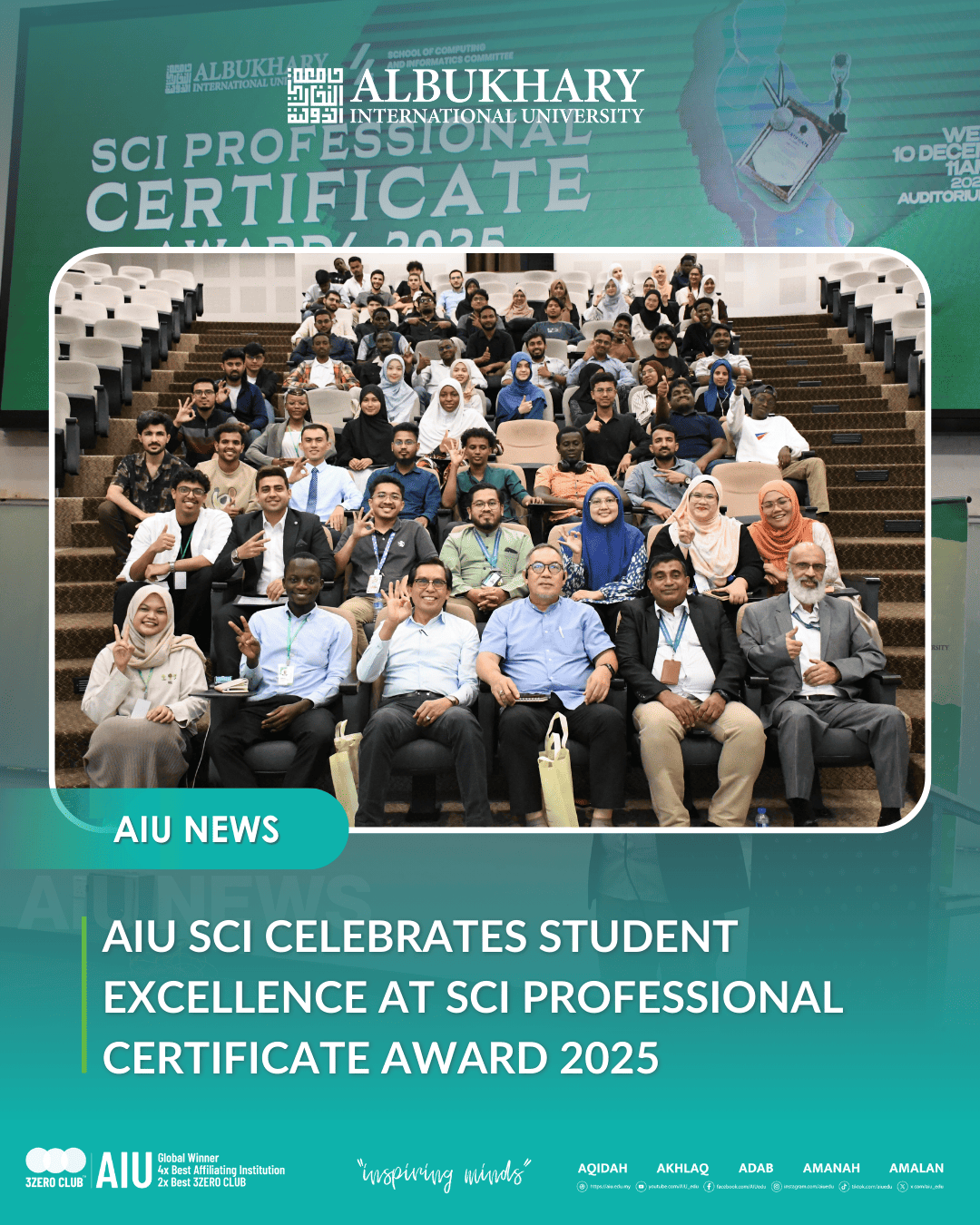 ALOR SETAR, 24 December 2025 – The School of Computing and Informatics (SCI), Albukhary International University (AIU), successfully hosted the SCI Professional Certificate Award 2025 on 10 December 2025 at the AIU Auditorium, recognising students who achieved industry-recognised professional certifications …